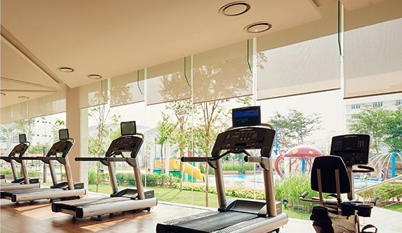 Offering unobstructed views of the verdant landscape, the gym and fitness centre feature a variety of state-of-the-art cardio and strength training equipment, including treadmills, stationary bikes, elliptical cross-trainers and free weights. The gym also features an aerobics and yoga studio as well as separate steam rooms and sauna facilities for male and female guests.